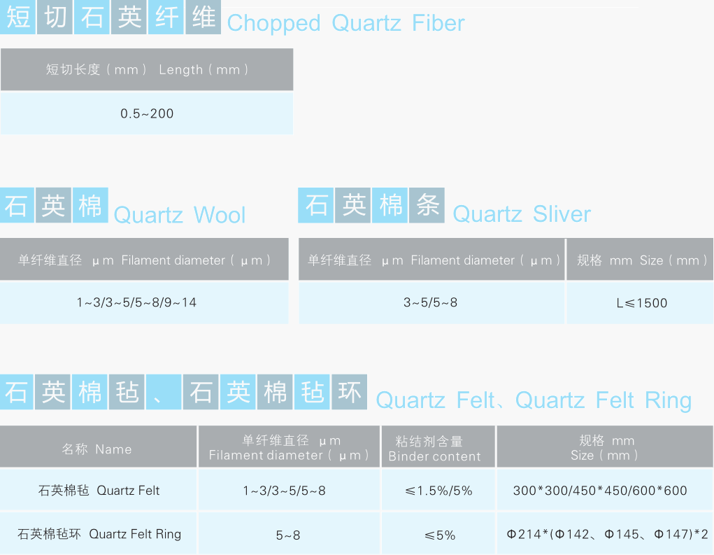 Quartz fiber chemical stability applications: filter media for experimental analysis, filtration of hot acid gas, reinforcement of acid-resistant composites (if broken, the fiber is not corroded by chemical media). In addition to hydrofluoric acid and hot phosphoric acid, quartz glass has good acid resistance to general acids. At room temperature, alkali and salt corrode the quartz glass very slightly.
